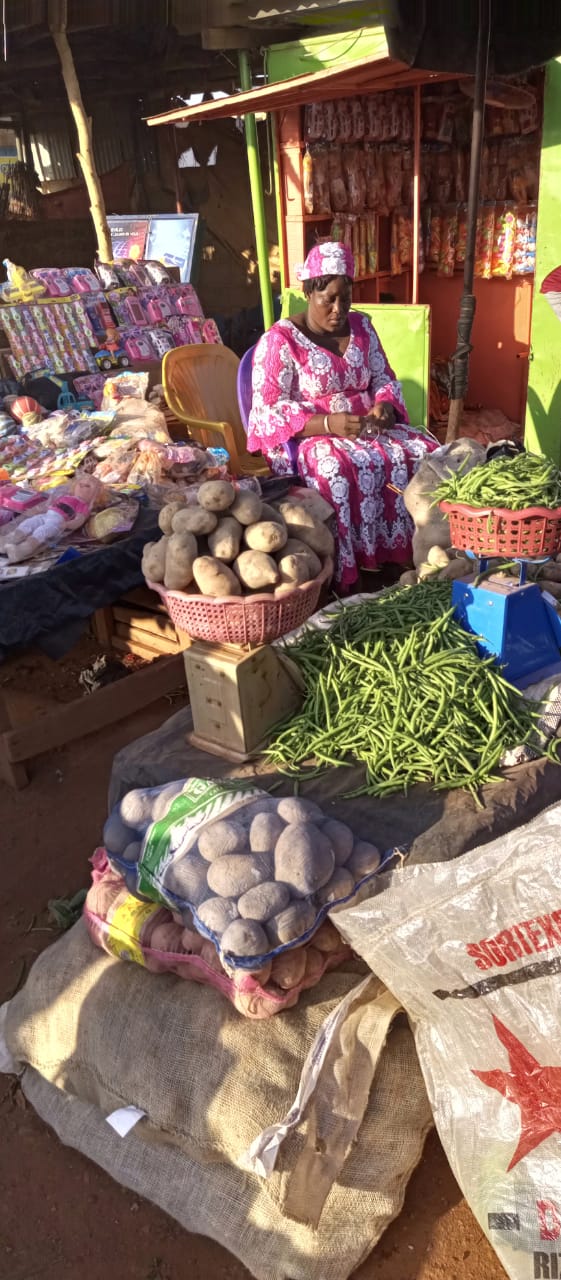 « Les femmes, comme ma petite soeur se lèvent à 4h du matin pour chercher les condiments chez les grossistes pour vendre. Elles demandent la place pour s’asseoir à vendre, donc elles ont des difficultés pour ça. Manque de place pour eux, elle marche à pied à à peu près 15 kilomètres du marché. «